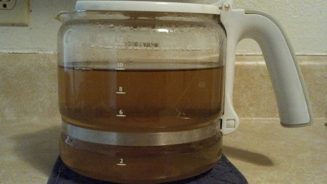 (After the second time of brewing the vinegar mixture, this is what I got. Gross. Somehow it evaporated 2 full cups, too. Weird.)